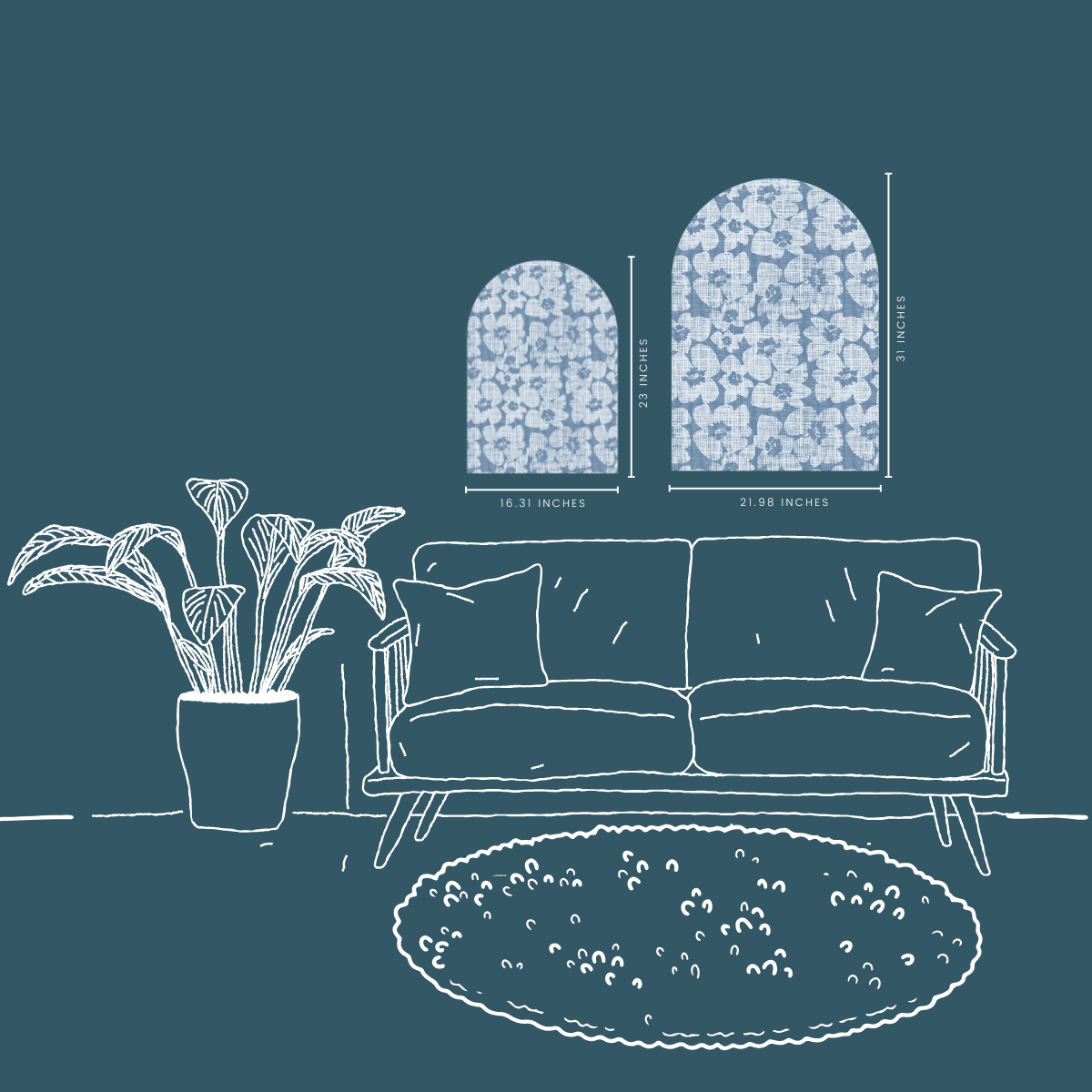 Blue Floral Arch Wall Art | Modern Coastal Patterned Wall Decor | Textured Chambray Blue Flower Design on EPVC Panel | Curated Wall Accent