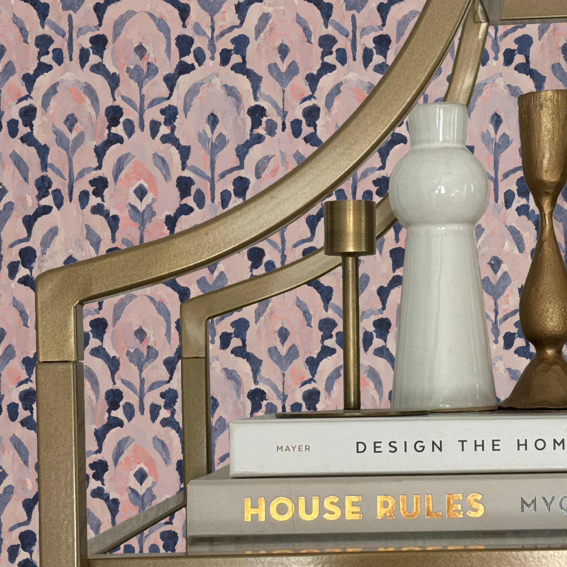 Blush Reverie Wallpaper is designed to feel romantic yet grounded. Inspired by classic decorative motifs with a modern artistic twist, this pattern layers blush tones, soft neutrals, and deep navy accents to create a look that feels collected, expressive, and easy to live with.
