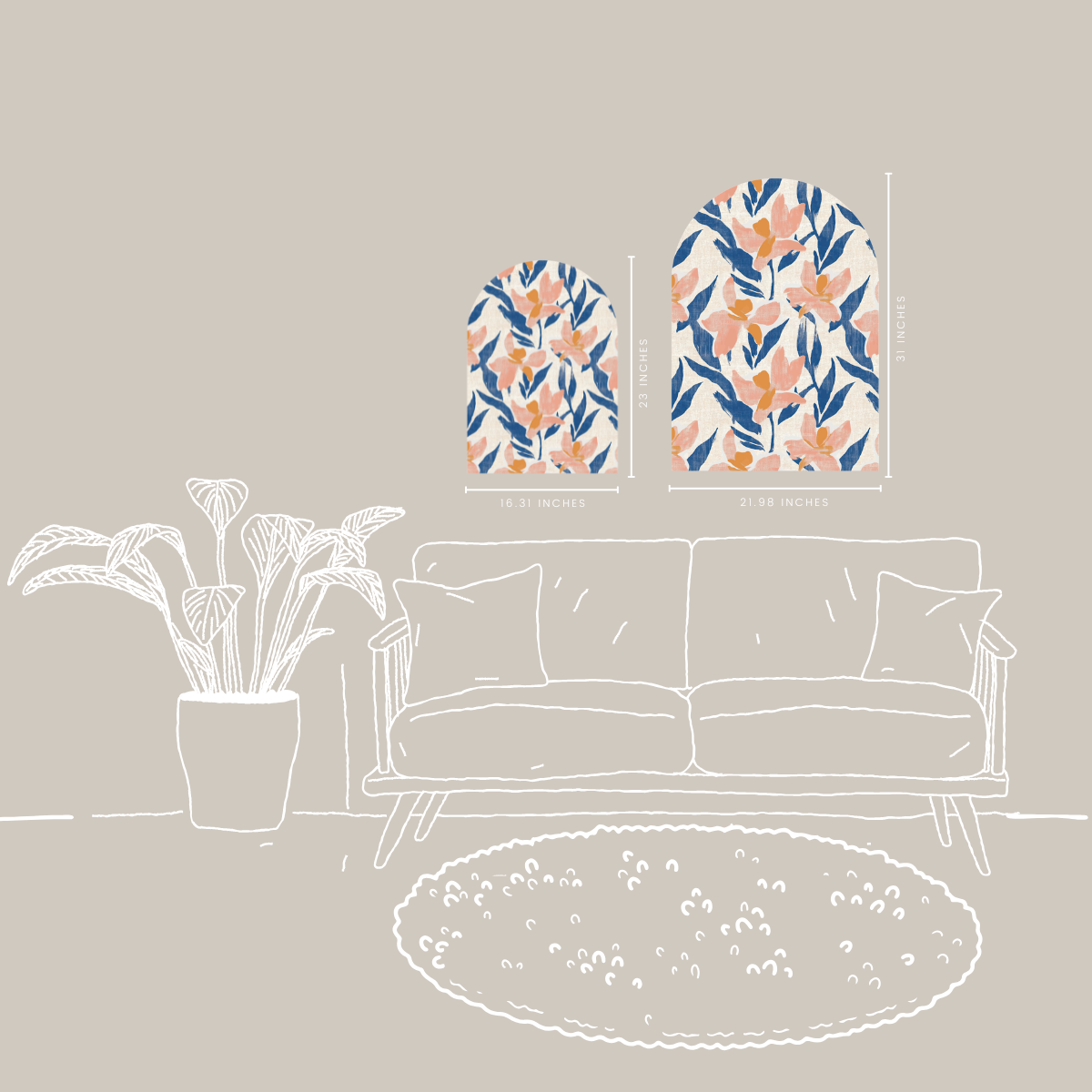 Blushing Botanica Modern Floral Arch Wall Art Pink Blue Botanical Print for a Warm Layered Look