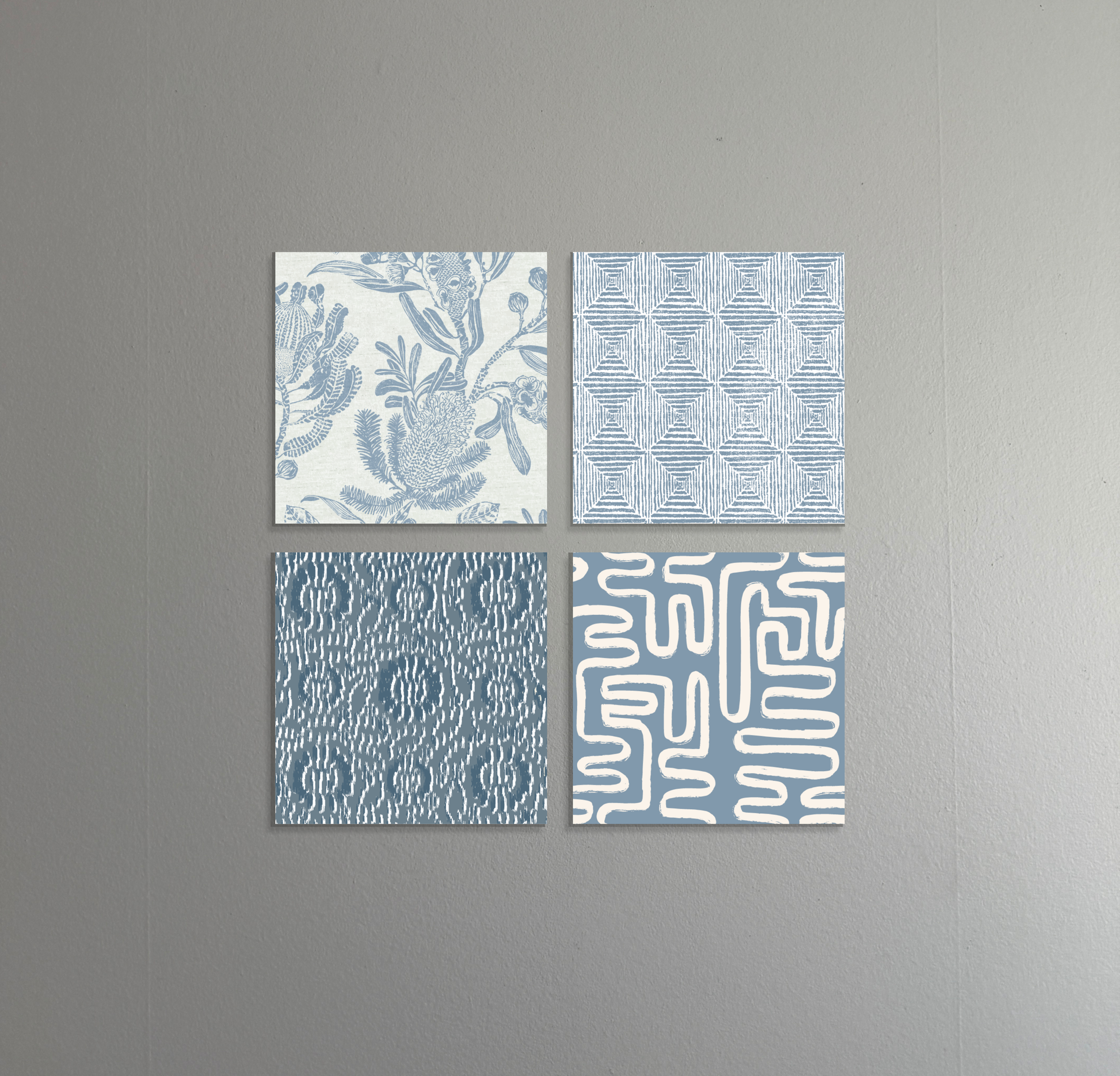 Cool blues and curated texture come together in a relaxed, breezy palette that feels like a seaside escape.