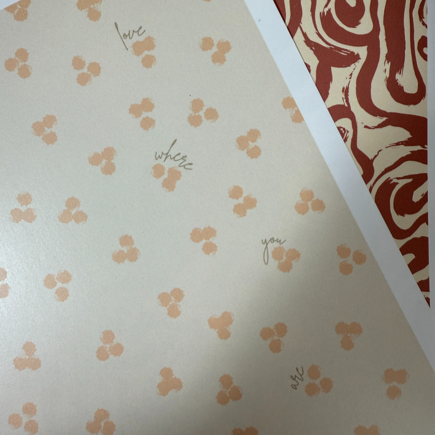 Your space should feel like you. Delicate and understated, this print features soft brush-dotted clusters on a warm neutral background with the hidden message “love where you are” woven into the design. It’s a gentle reminder to appreciate the present and find beauty in your surroundings.