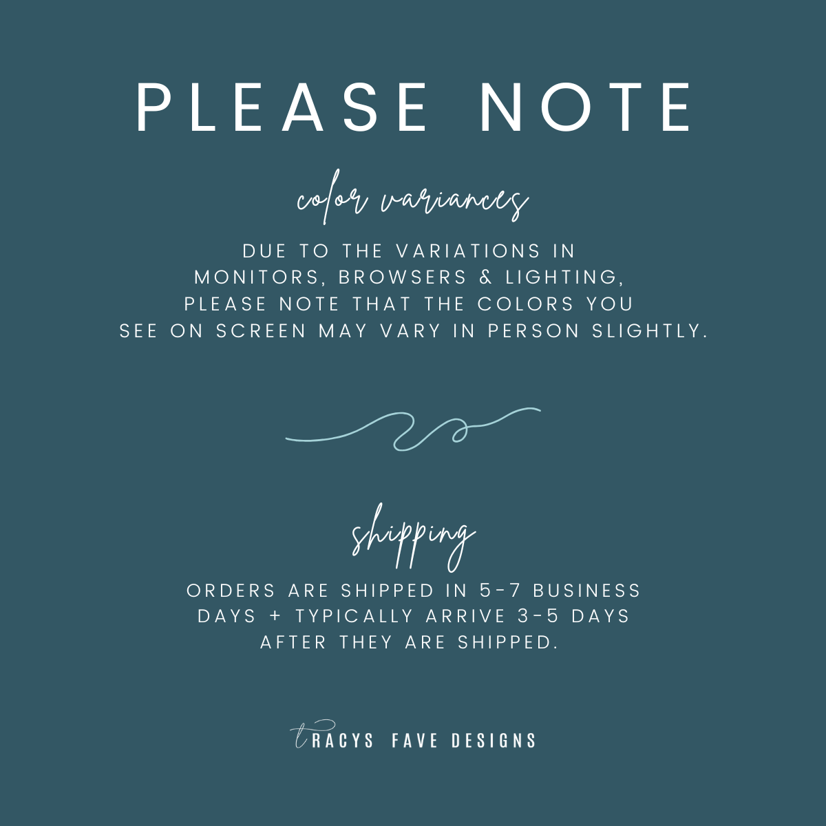 Orders ship in 5–7 business days and typically arrive within 3–5 days after shipping.
