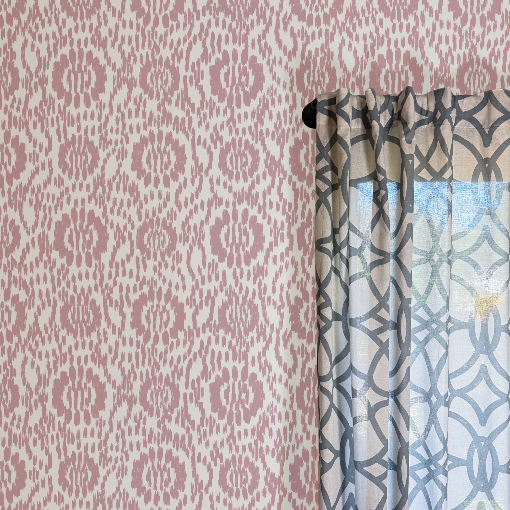 This design features a stylized ikat motif in a soft dusty rose palette on a warm neutral ground. The distinctive pattern adds depth and texture while staying versatile enough to complement both modern and timeless interiors. Rosewood Threads works beautifully in bedrooms, powder rooms, dining spaces, or as a statement accent wall.