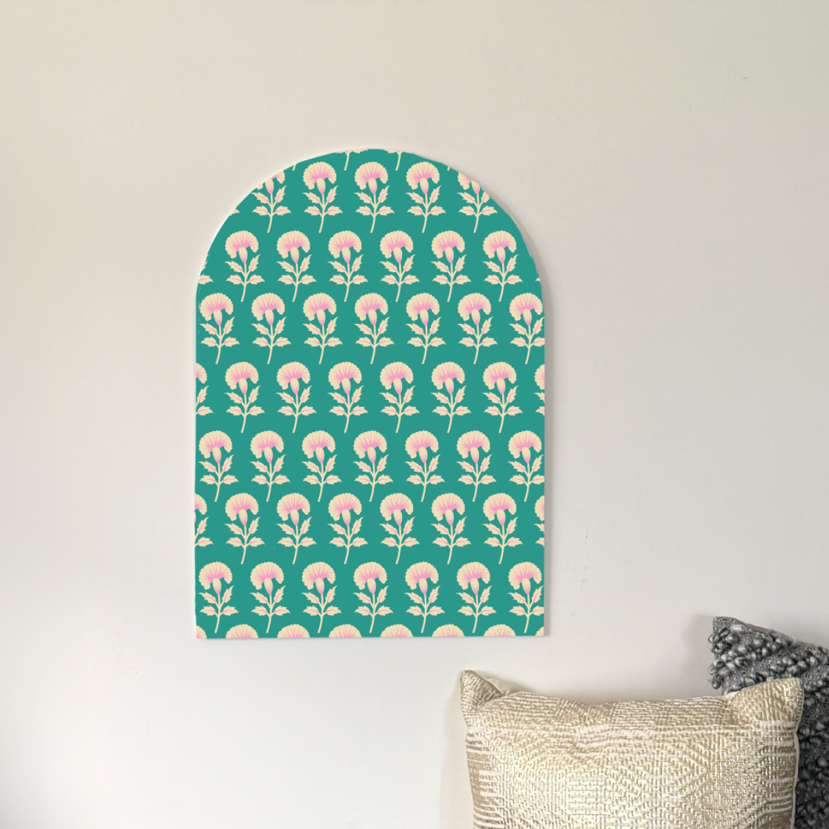Your space should feel like you. Sea Stamped Bloom brings an effortless, coastal-inspired charm to any room with its soft teal backdrop and hand-stamped floral motif. Balanced, versatile, and serene, this piece captures the relaxed elegance of modern block print design.
