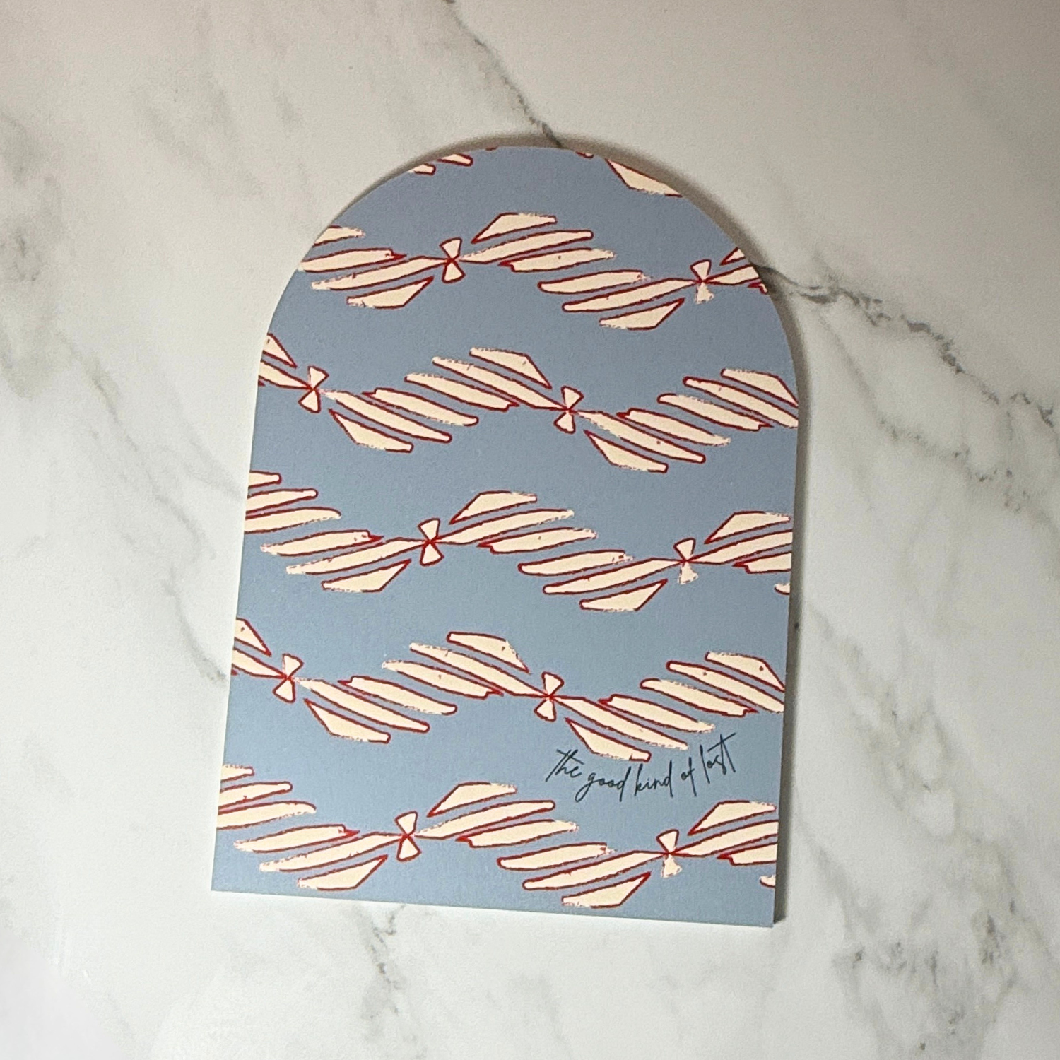 The Good Kind of Lost Mini Arch brings a sense of calm wanderlust to your space with its soft blue background and hand drawn ribbon pattern in coral and cream. Inspired by the beauty of exploration and creative detours, it’s a piece that feels both playful and thoughtful. The petite size makes it perfect for gifting or styling smaller spaces that need a touch of personality.